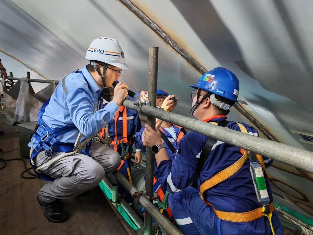 吊装前,监督员按照核电厂大件吊装通用技术等国家标准、技术规范要求对施工方案进行了细致审查,开展多轮审查对话,并对人员资质、起重机械及吊索具等各项先决条件进行核查。此外,监督员在日常现场巡视期间多次深入狭窄的施工区域,复测穹顶部分焊缝区域的局部变形情况,对施工过程进行精准监督;通过关键工序选点监督,抽查穹顶焊缝质量的无损检测报告、穹顶上部分设备的单体试验记录,发现个别试验环节无相关记录支撑的问题后,第一时间要求施工单位补做相关试验,用实际行动落实严格监管的要求,于细节处筑牢核安全屏障。